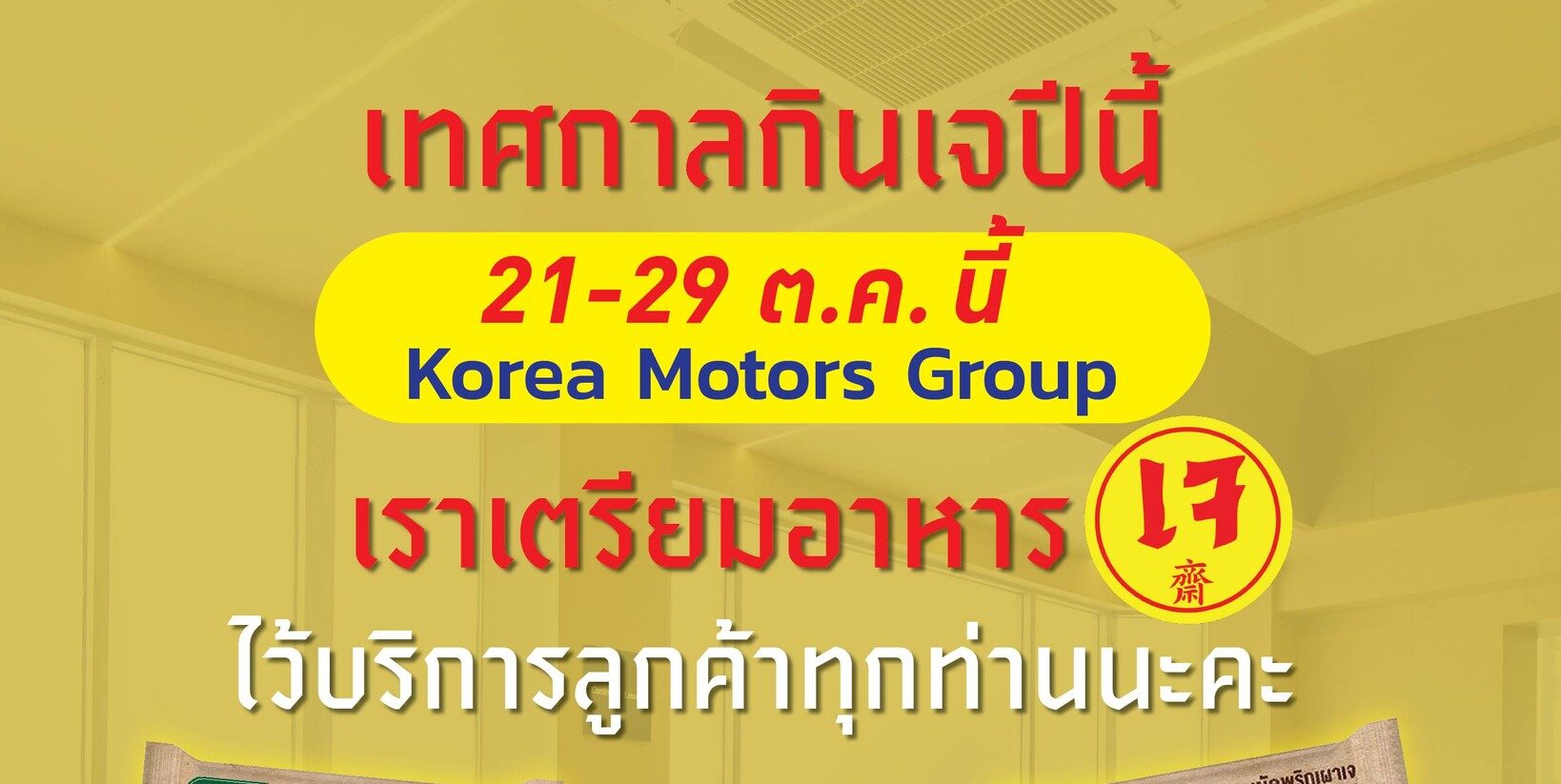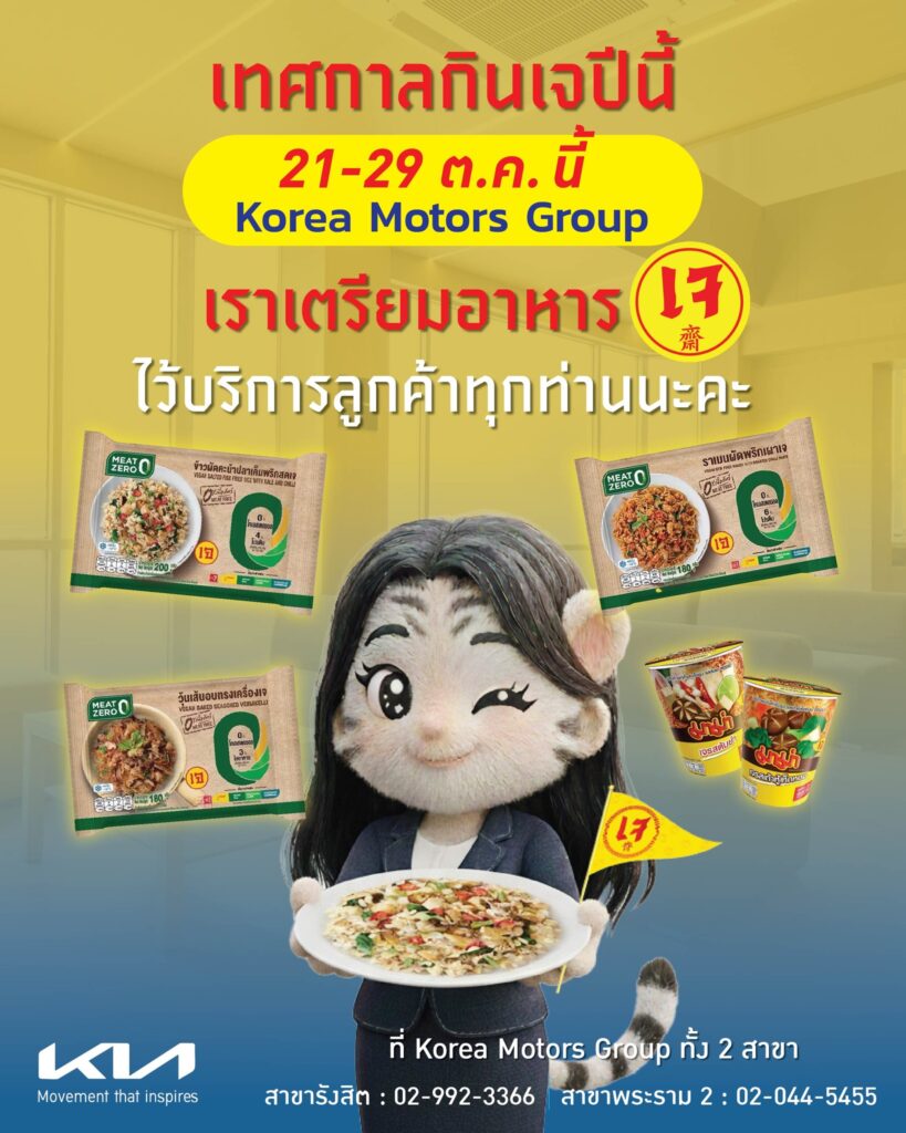Korea Motors Group ได้จัดเตรียมอาหารเจ สำหรับลูกค้าที่มาใช้บริการทุกท่าน ที่ศูนย์บริการ KIA Bangkok ทั้ง 2 สาขานะคะ