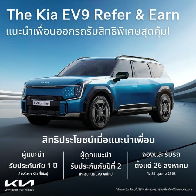 โปรโมชันสำหรับลูกค้า The Kia EV9 โครงการ “เพื่อนแนะนำเพื่อน”