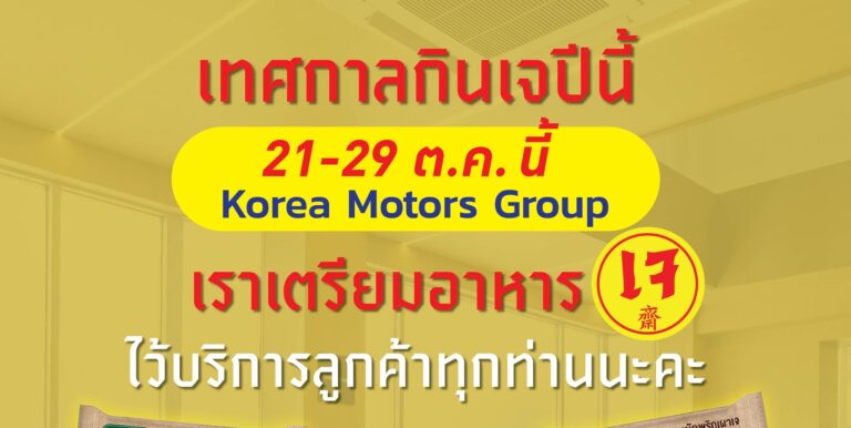 Korea Motors Group ได้จัดเตรียมอาหารเจ สำหรับลูกค้าที่มาใช้บริการทุกท่าน ที่ศูนย์บริการ KIA Bangkok ทั้ง 2 สาขา